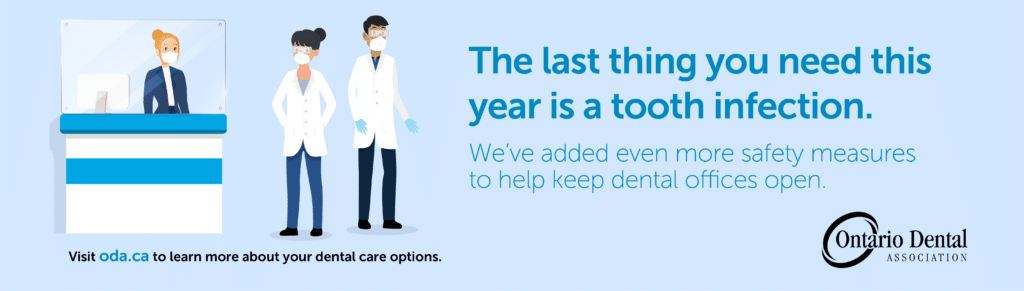 Patients are pre-screened when booking a dental appointment, with questions provided by Ottawa Public Health. We take each patient’s temperature when in our office; we do not treat anyone with a temperature of 37.5 C or higher. Patients are asked to come to their appointments alone, other than in the case of a minor or a person needing caregiver assistance (in this case only ONE support person per patient is permitted and the support person must stay in the operatory with you for the duration of your appointment).